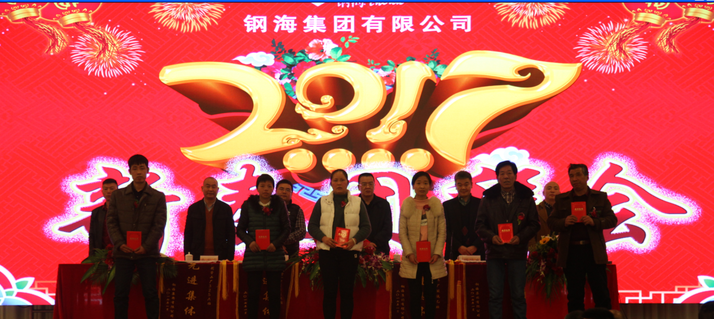 春信千家传紫燕,福音万户报金鸡。1月14日,钢海集团2017年新春团拜会在永康宾馆千叶厅圆满举行,集团及各子公司400余名干部和员工代表欢聚一堂,共同迎接新春的到来。集团公司董事长胡红兵,浙江索普实业董事长胡献忠、东阳索普公司董事长胡一军及副总经理童军跃、童军堂等领导班子出席大会,并向全体员工及和员工家属致以诚挚的问候和美好的祝愿。