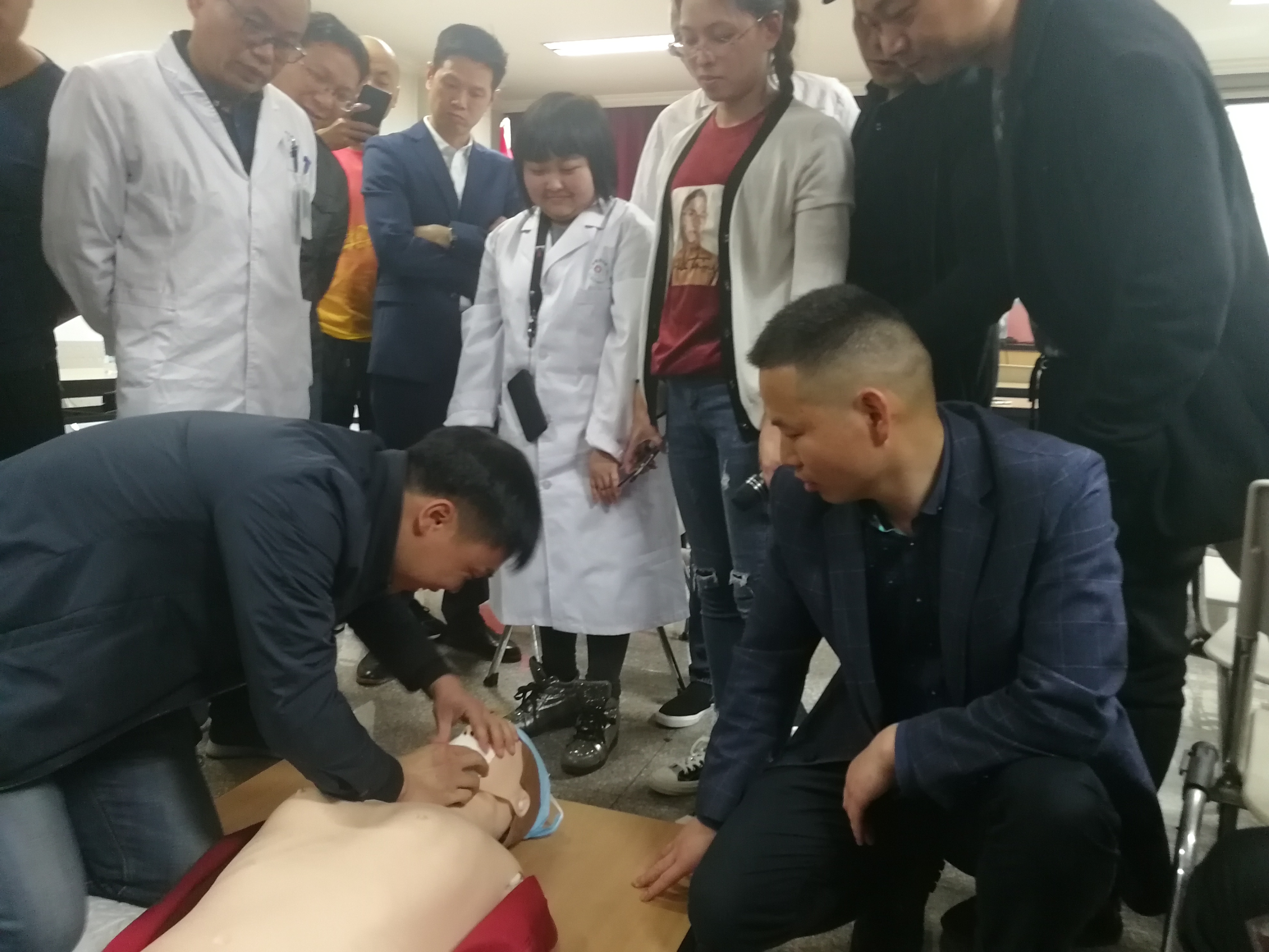 待老师操作完毕后,员工们纷纷跃跃欲试。部分员工参加了心肺复苏的实操练习,培训老师在旁指导,力保手势、按压部位、按压力道、吹气等动作做到标准、规范。最后,永康瑞金医院院长王红政,和我们员工一对一,面对面的讲解生活中遇到的健康问题,并告诉我们要定期检查身体,早发现早预防早医治,有个健康的好身体。