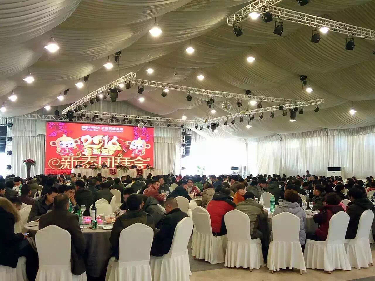 腊月十六的永康宾馆千叶厅灯光璀璨,暖意融融,洋溢着喜气洋洋的节日气氛。今天,一年一度的钢海集团新春团拜会在这里隆重召开,集团及各子公司管理干部、员工代表和各界宾朋欢聚一堂,共迎新春。钢海集团董事长胡红兵,钢海集团总经理、浙江索普实业有限公司董事长胡献忠,东阳索普健身器材有限公司董事长胡一军,钢海集团副总经理施文杰、童军堂、童军跃等公司领导在主席台就坐。会议由副总经理童军跃主持。