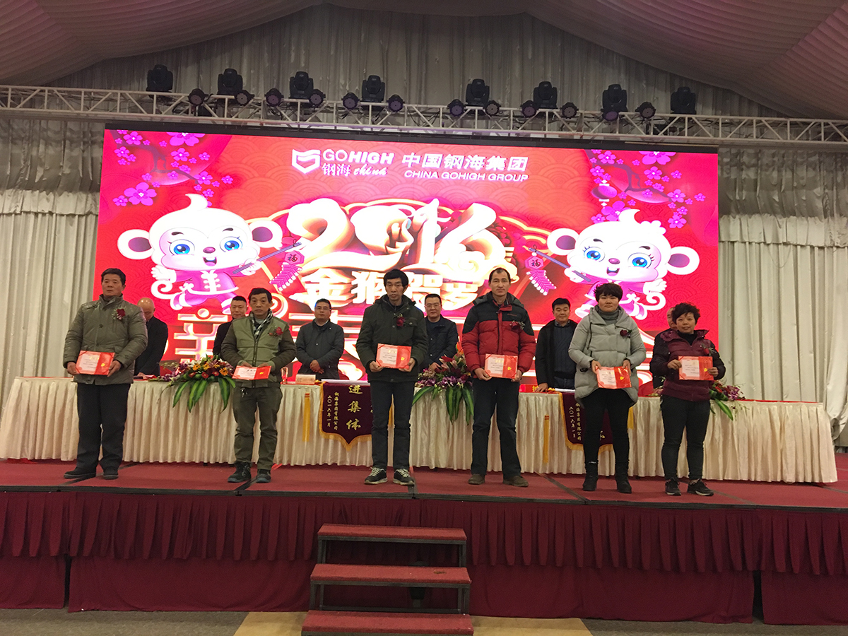 团拜会第二项议程是对集团及各子公司先进工作者及先进集体进行表彰。四十余位年度先进工作者和先进集体代表胸配鲜花,光彩照人,按次序上台接受公司领导表彰。集团及子公司的稳步发展少不了管理干部的辛勤付出,同样少不了先进工作者和先进集体的模范引领和优秀示范。公司希望他们在新的一年里再接再厉,在平凡的工作岗位上继续发挥模范带头作用,创造不平凡的业绩。表彰过后,先进工作者代表和先进集体代表分别上台发言。